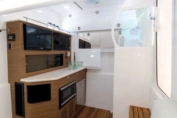 With a sun lounge and a tabled seating area, the front of the boat is for those who want to relax while grabbing some rays.
